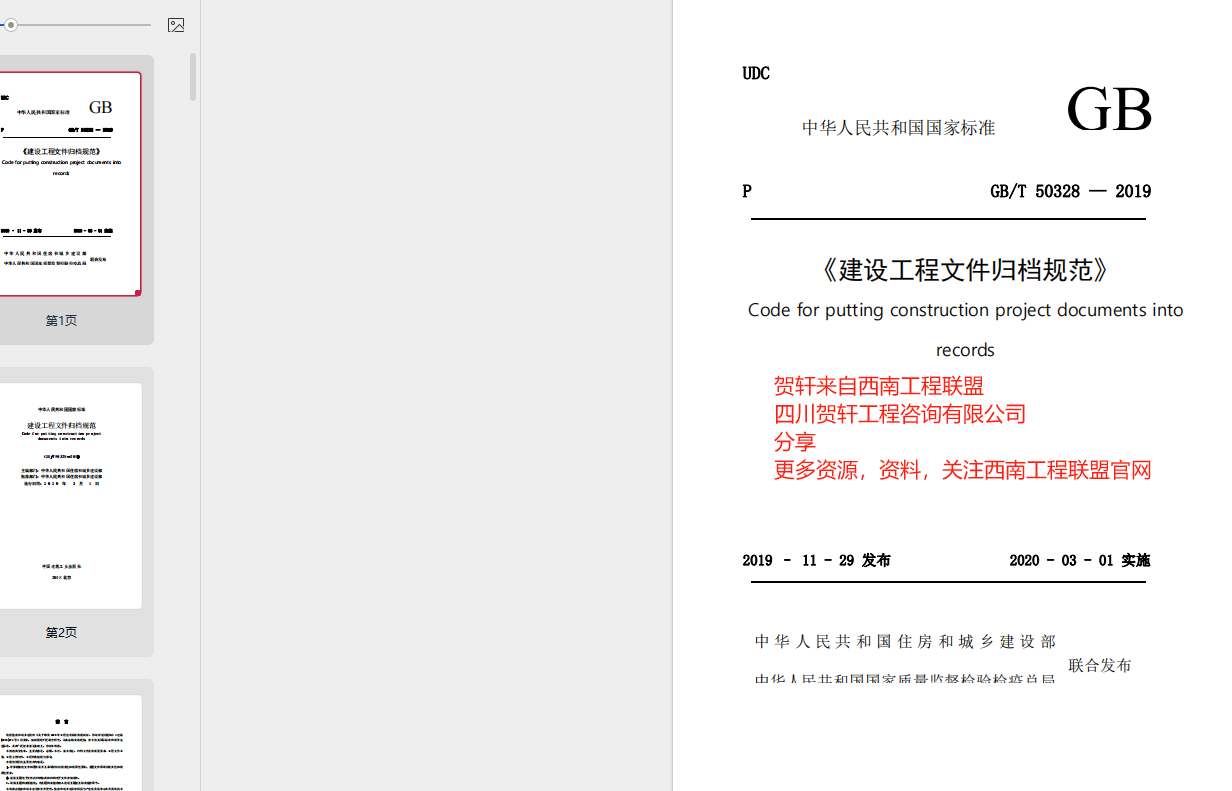 西南工程联盟贺轩分享规范:GB50328-2019+建设工程文件归档规范